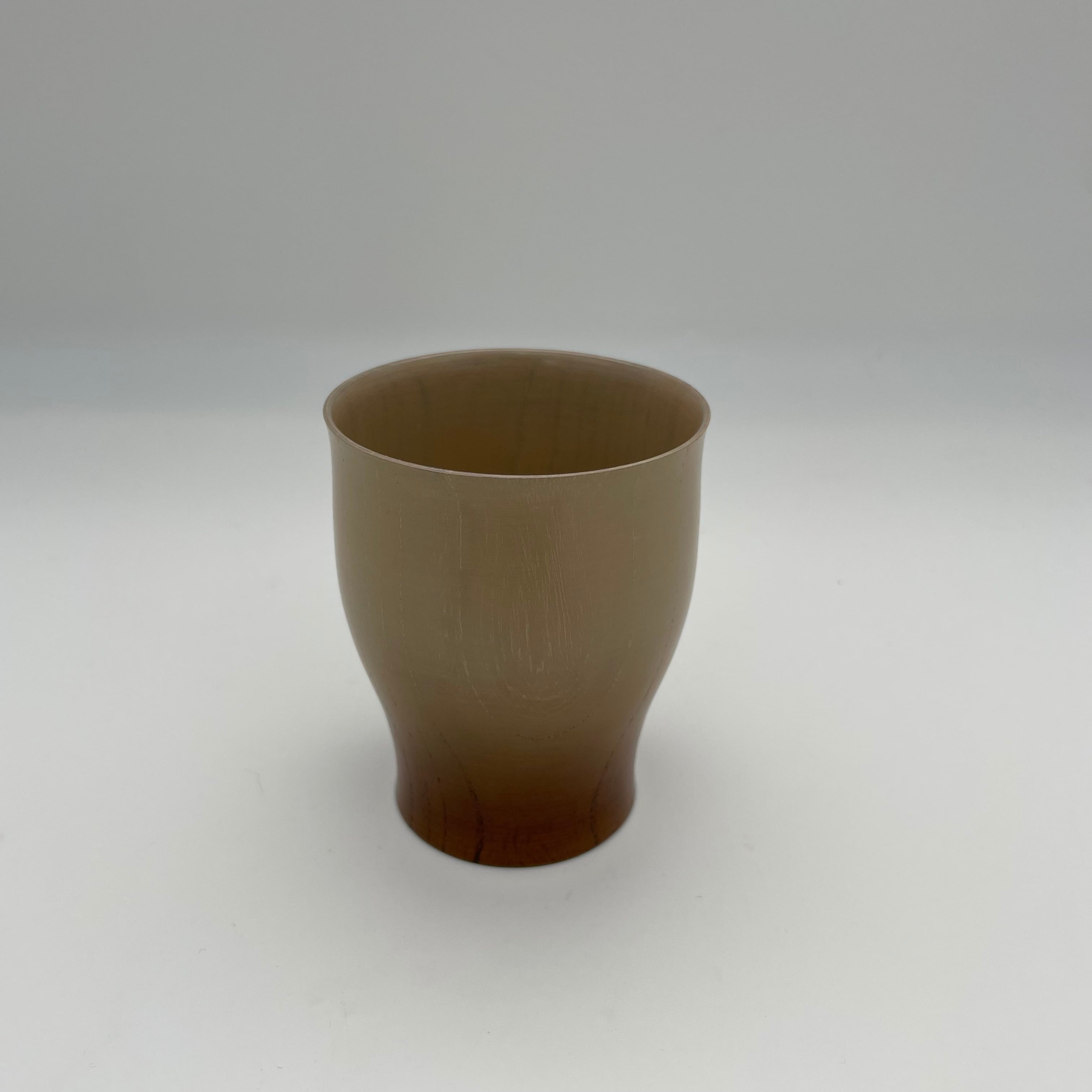 上縁は端反で飲みやすい形です。下の部分は木目がみえつつ、上部に行くにしたがって木目が白に隠れていきます。